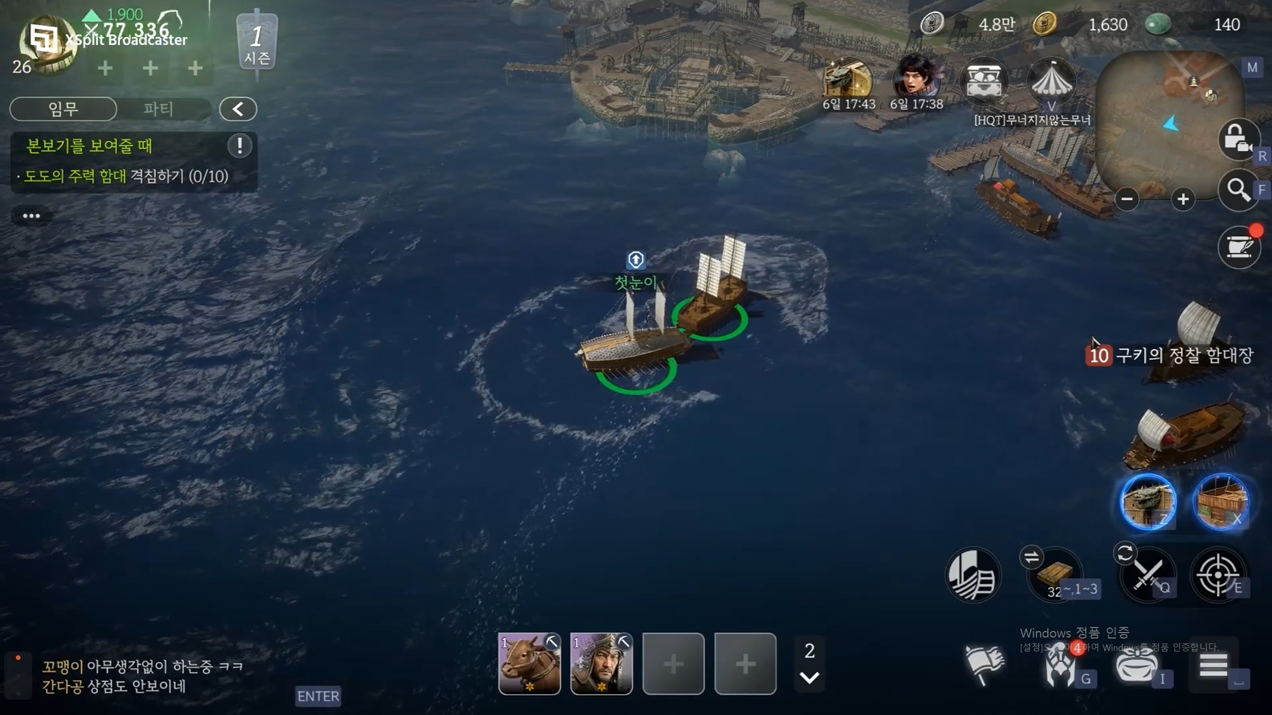 3.군주, 거상, 아틀란티카의 필드 플레이 - 작게 축소된 우리나라, 일본, 중국의 오픈 필드를 돌아다니는 재미가 그대로 임진에도 있습니다. 해상에서 배를 타고 해안선을 따라 이동하며 육지를 보는 재미가 추가되었습니다.