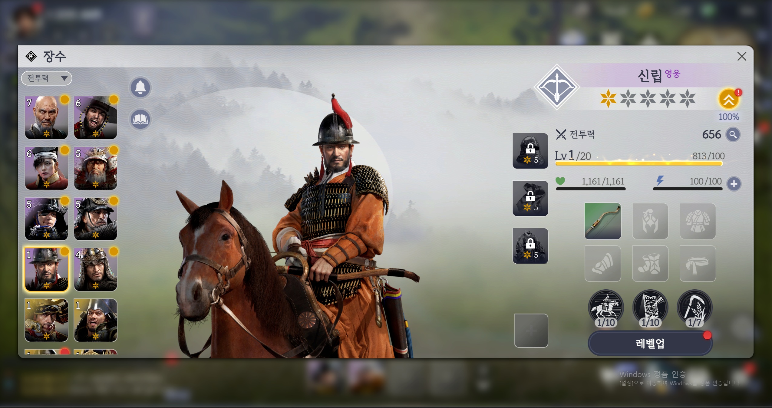 6. 시원시원한 성장입니다. 방치형 게임처럼 소환을 많이 할수 있었습니다. 테스트기간이라 특히 더 많은 재화를 주는게 아니라고 했습니다. 초반 진행은 빠르게 , 많은 장수도 얻을 수 있었습니다. 하지만 육성하는데는 어마어마한 캐릭터 조각이 필요해서 거래나 인게임 플레이, 전략적 플레이가 필요합니다.